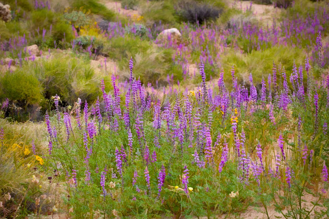 The Dune Primrose blooms totally dominated the sandy soil areas (hence the "band" of white seen from my house). As you move away from the sand and into rockier soil, other flowers and colors dominated.